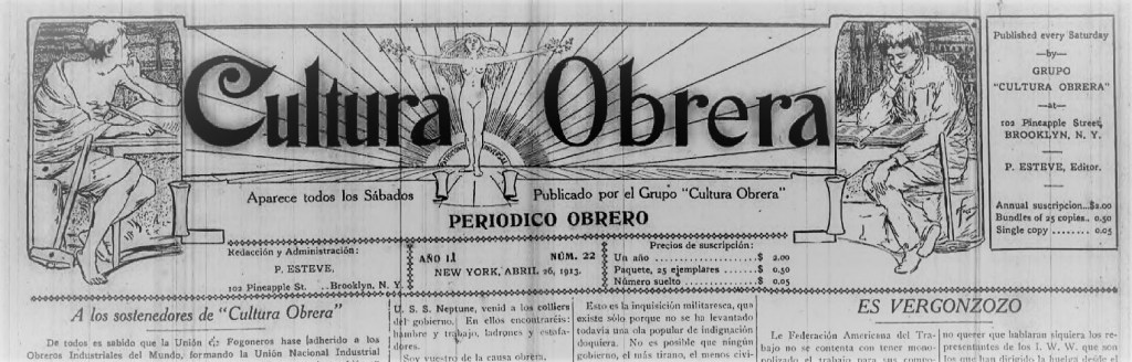O semanario “Cultura Obrera” era un periódico escrito en castelán, publicado en Nova Iorque, editado polo grupo homónimo, facendo parte dos IWW (Industrial Workers of the World), do que xa temos falado neste espazo web.