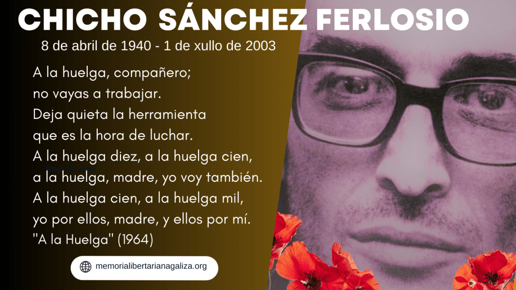 O 1 de xullo de 2003 morría en Madrid o cantautor Chicho Sánchez Ferlosio, autor de cancións como “A la huelga” ou “Gallo negro, gallo rojo”, así como o “Romancero de Durruti”, que acabaron por se converter en auténticos símbolos da resistencia libertaria ao franquismo.
