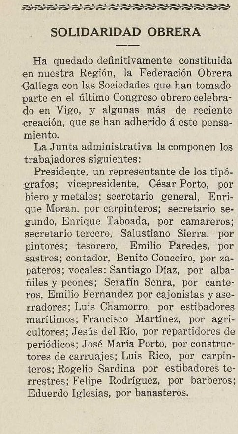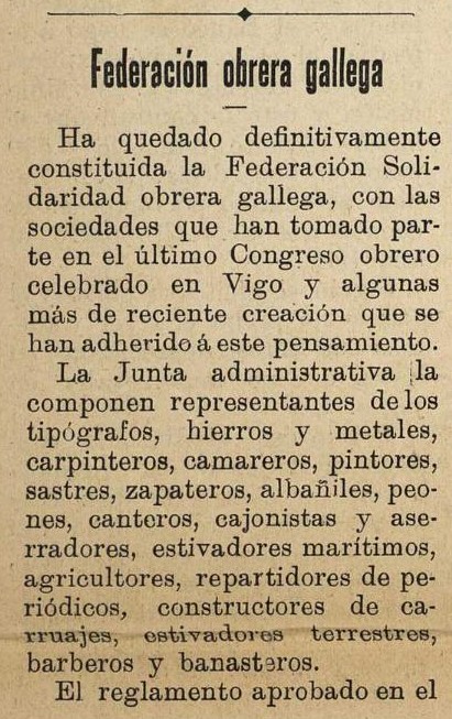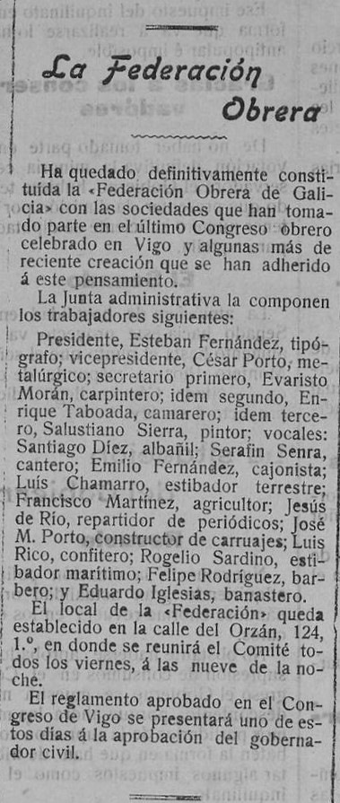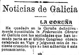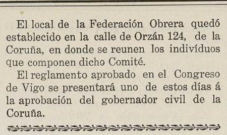 O nacemento da nova organización logo do Congreso Obreiro en Vigo no mes de marzo de 1911 tamén foi recollido pola prensa burguesa da época.