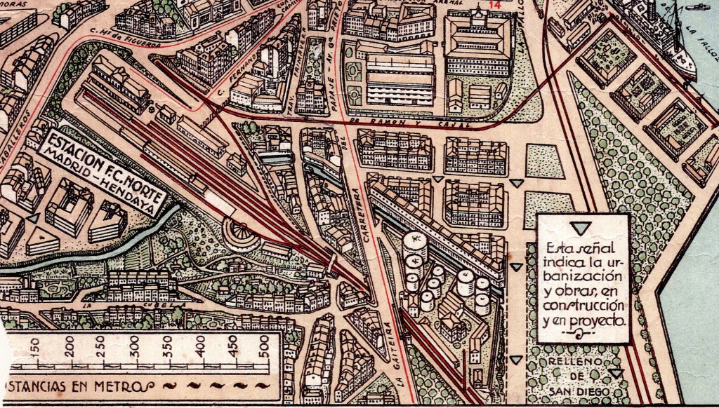 Plano da zona da Cubela – A Gaiteira – Año 1936 – Estación del Norte – Publicado en «Casares Quiroga y La Coruña de su época» – nº1510 ARG – Fragmento. En “As Xubias-Os Castros-A Gaiteira. Historia de una barriada en imágenes y fotos antiguas”