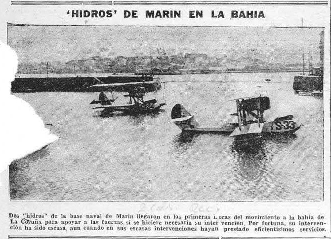 Tamén participou nesta acción un hidroavión con base en Marín que xunto a dous buques de guerra chegaran ao porto coruñés. Un deles, un destructor inglés que desembarcou pese ao hostigamento dos milicianos, desembarcou tropas para ocupar e protexer o consulado inglés. O xornal relata que o hidroavión foi tiroteado dende os barcos de pesca que foran desamarrados do porto e fondeados na baía. O hidroavión respondeu ao ataque con fogo de ametralladora.