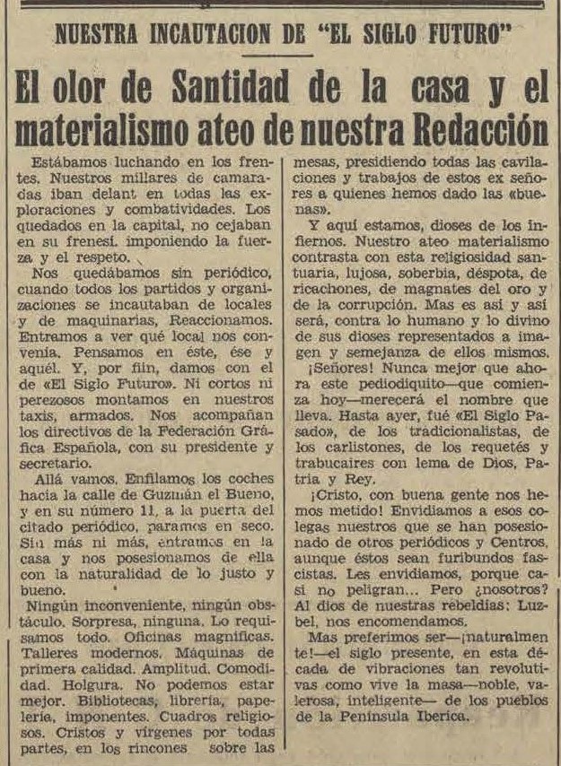 O 24 de xullo de 1936 saía de novo do prelo o xornal anarcosindicalista “CNT” na cidade de Madrid, logo de incautarse da redacción da publicación tradicionalista e reaccionaria “El Siglo futuro”.