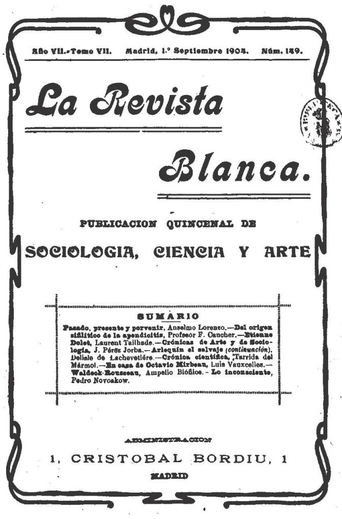 - “La Revista Blanca”, Madrid, 1 de setembro de 1904