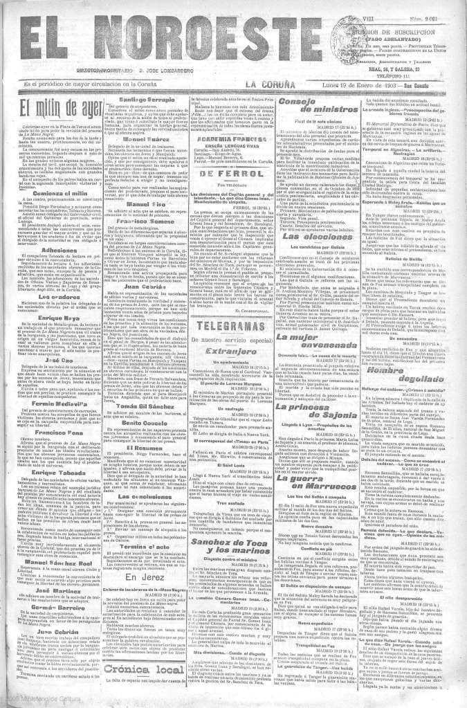 Tamén o xornal La Voz de Galicia no seu exemplar do 19 de xaneiro de 1903 recolle na súa portada o desenvolvemento do mitin obreiro, co seguinte contido: