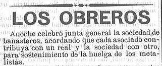 Solidariedade económica dos asociados á Sociedade de Banasteros e á Sociedad de Toneleros da Coruña á folga dos metalúrxicos (El Noroeste, 24 de agosto e 19 de decembro de 1902, respectivamente).
