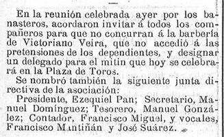 Boicot dos banasteiros a unha perruquería durante a folga de mozos de barbeiría e perruquerías (El Noroeste, 23 de novembro de 1902)