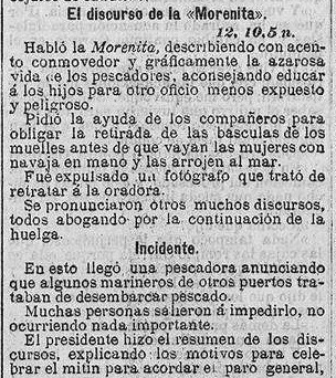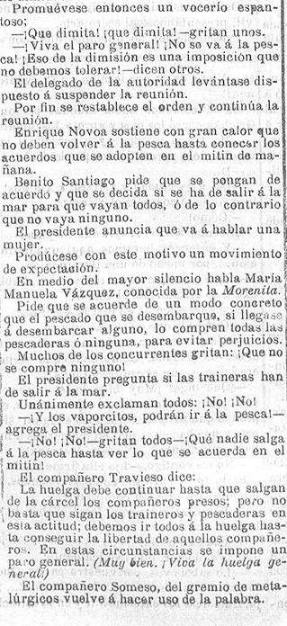 Mais tamén na prensa de fora da Galiza podemos atopar referencia á participación de María Manuela na mobilización obreira na cidade naquelas datas.