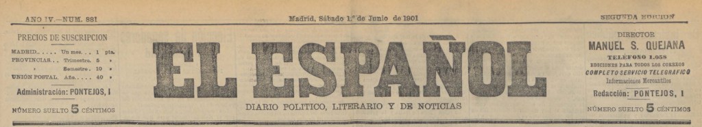 O xornal madrileño El Español, diario de orientación monárquica e liberal-conservadora, tamén se fai eco das novas procedentes da cidade da Coruña polos sucesos derivados da represión das folgas e o movemento obreiro coruñés nos meses de maio e xuño de 1901.