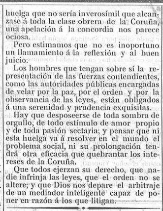 No seu exemplar dese martes 31 de xullo de 1906 e ao fío do sinistro na mar preto da Coruña do vapor Cabo de Trafalgar con base en Santander, El Noroeste publica unha nova columna de opinión chamando ao fin do conflito, baixo o título da que entresacamos algúns parágrafos: