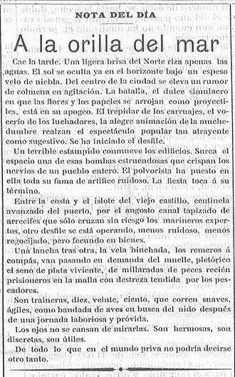 Nese mesmo exemplar, dun modo máis lírico, baixo o título “Nota del día – En la orilla del mar”, recóllese a entrada no porto destas traiñeiras á volta de faenar: