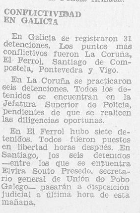 No xornal vigués El Pueblo Gallego, no seu exemplar de 3 de maio de 1977, tamén se recolle a nova das detencións polos actos do 1º de maio de 1977 na cidade coruñesa: