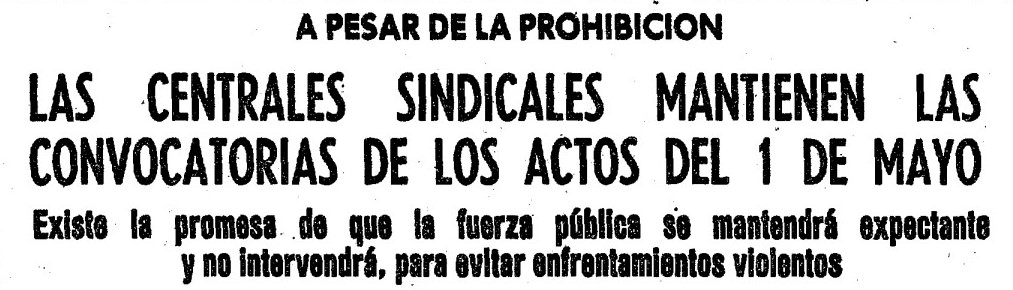 Malia as promesas do Goberno de Adolfo Suárez de permitir a celebración de actos sindicais con motivo do 1º de maio dese ano, o 29 de abril de 1977 todos os Gobernadores Civiles reciben instrucións de prohibir os actos previstos polas organizacións obreiras.