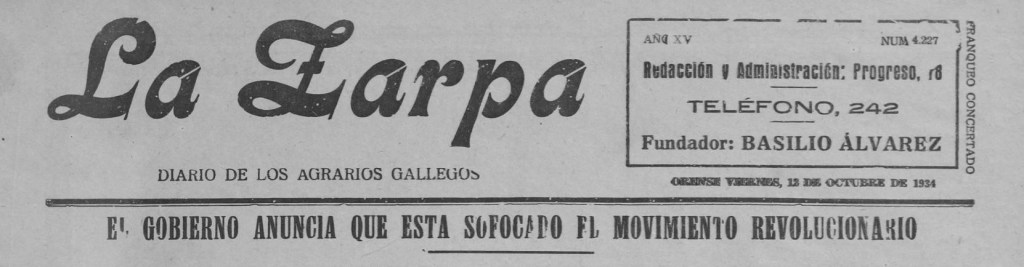 Con dita referencia, tiramos deses mesmos xornais da capital da provincia para ver o eco na prensa das xornadas de folga revolucionaria ao longo da semana entre o 5 e o 12 de outubro de 1934.