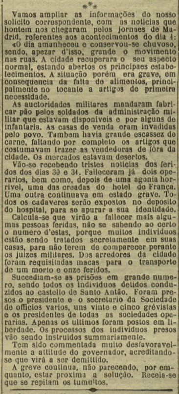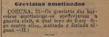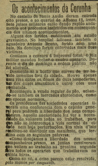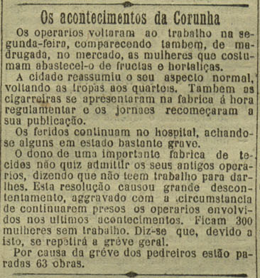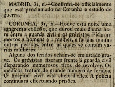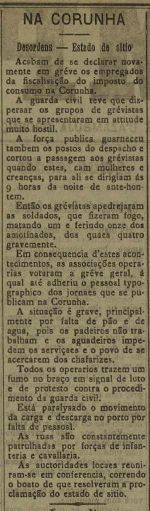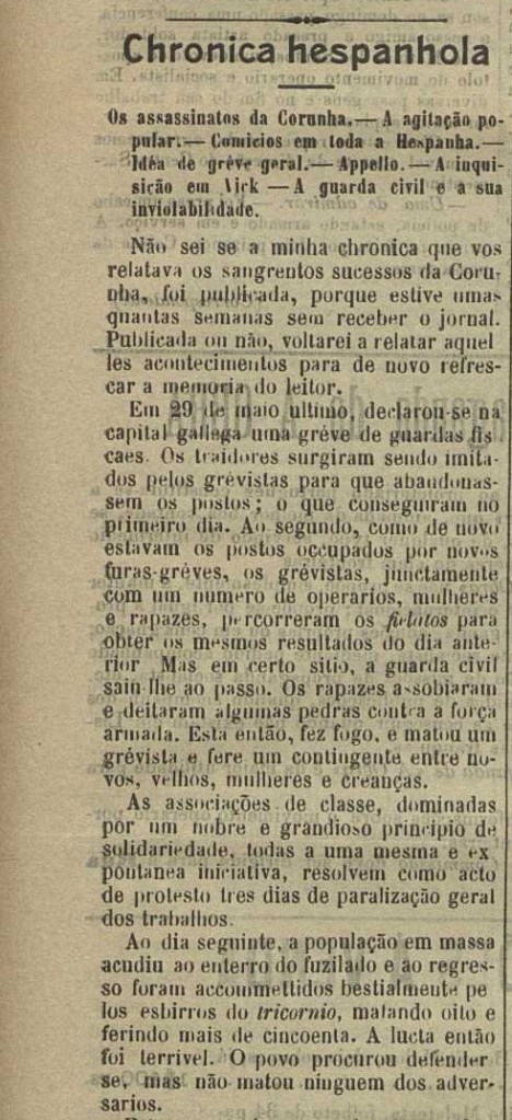 A nova dos sucesos represivos da folga dos días 30 e 31 de maio de 1901 na Coruña ben cedo chegaron á prensa de Portugal.