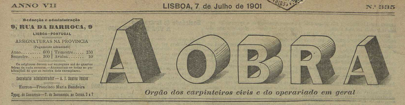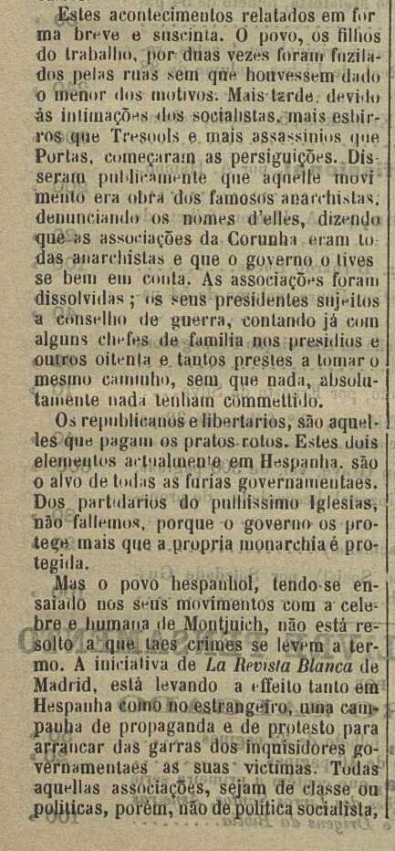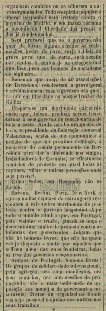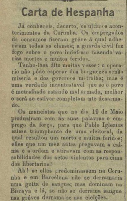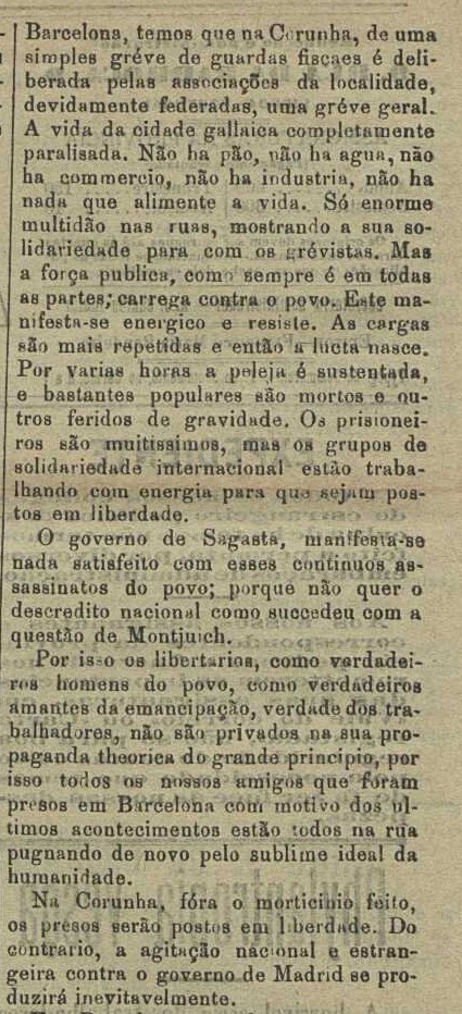 Pola súa banda, o semanario A Obra, de Lisboa e de tendencia libertaria, acolle por primeira vez novas do acontecido na Coruña nas páxinas no exemplar de 23 de xuño de 1901: