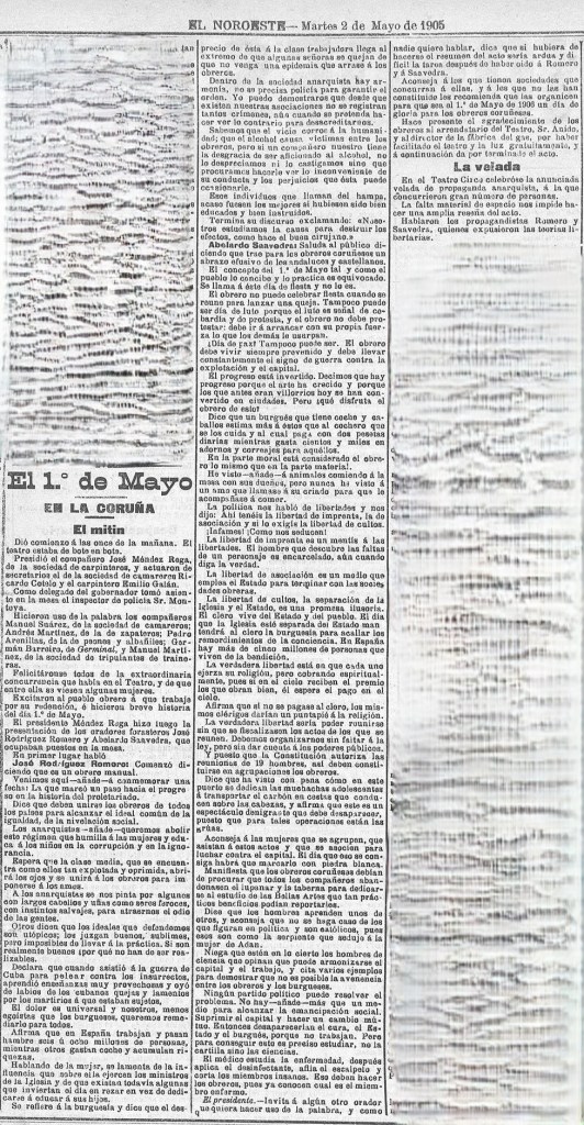 Así, El Noroeste facía unha crónica do acto celebrado polos traballadores e traballadoras coruñesas, salientando as intervencións dos oradores convidados: