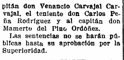 - Andrés Pérez Adega, de 21 anos, traballaba como dependente. Natural de Ferrol, pero veciño da Coruña. Fora mobilizado polo exército nacional e foi xulgado por rebelión militar.