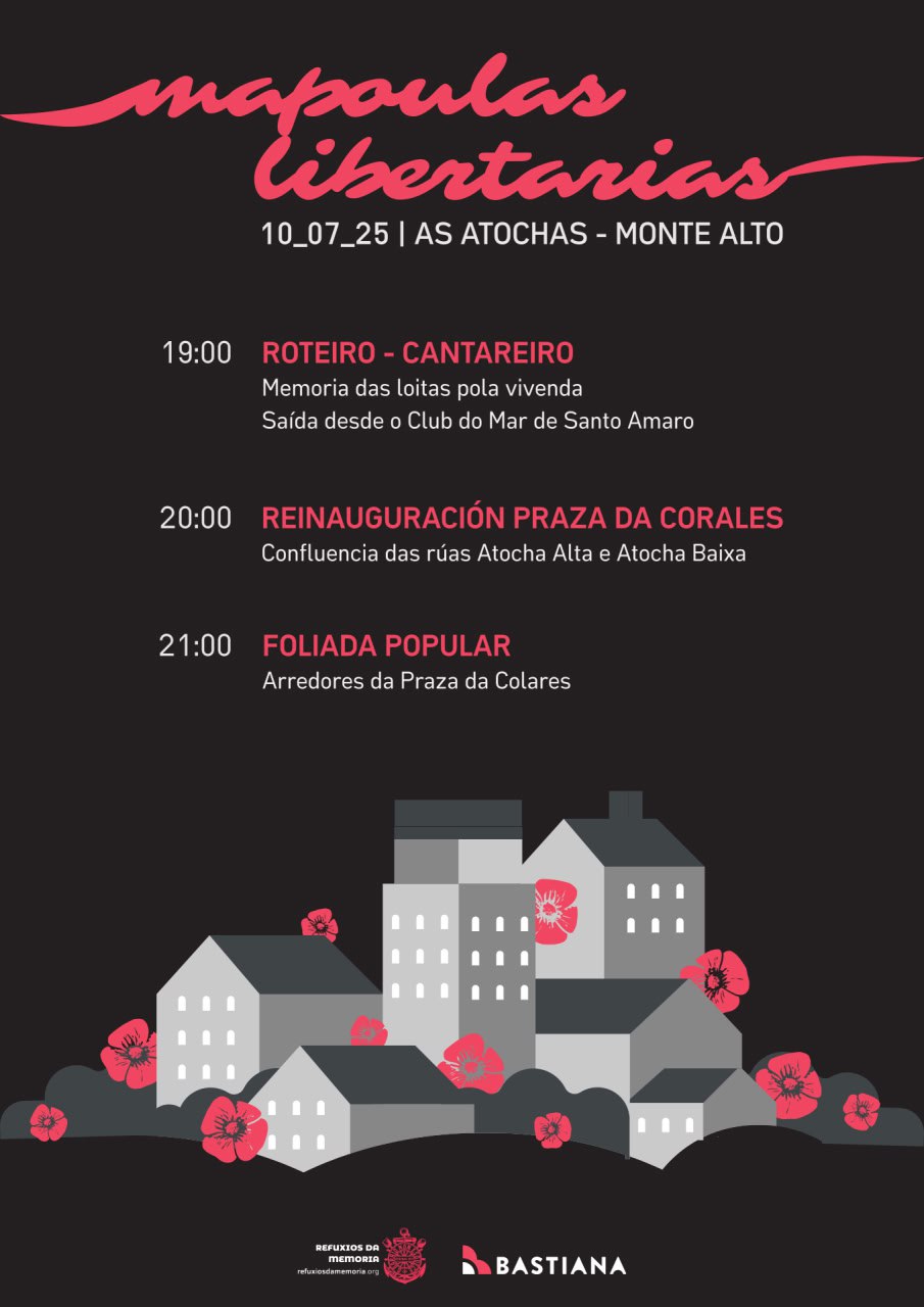 Como ven facendo dende o ano 2017, o colectivo Refuxios da Memoria da Coruña organiza hoxe, 10 de xullo, unha nova edición do Día das Mapoulas Libertarias có obxectivo de recuperar e reivindicar a memoria dun grupo de veciñas dos barrios coruñeses das Atochas e Monte Alto, un grupo de mulleres anarquistas que foron asasinadas, encadeadas, perseguidas e represaliadas por tecer unha rede de casas-refuxio no que dar acubillo ás vítimas da represión trala sublevación militar fascista de 1936. Esta rede foi desartellada o 10 de xullo de 1937 nun asalto policial das autoridades franquistas na que moitas perderon a vida.