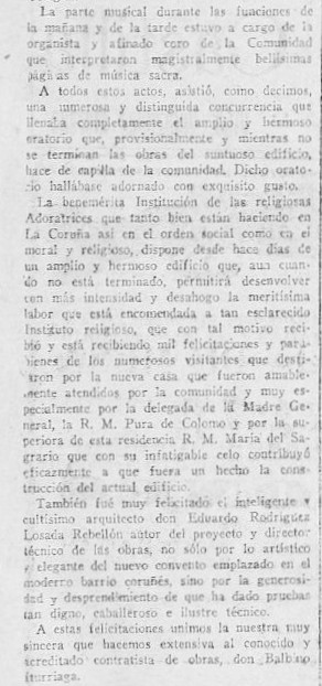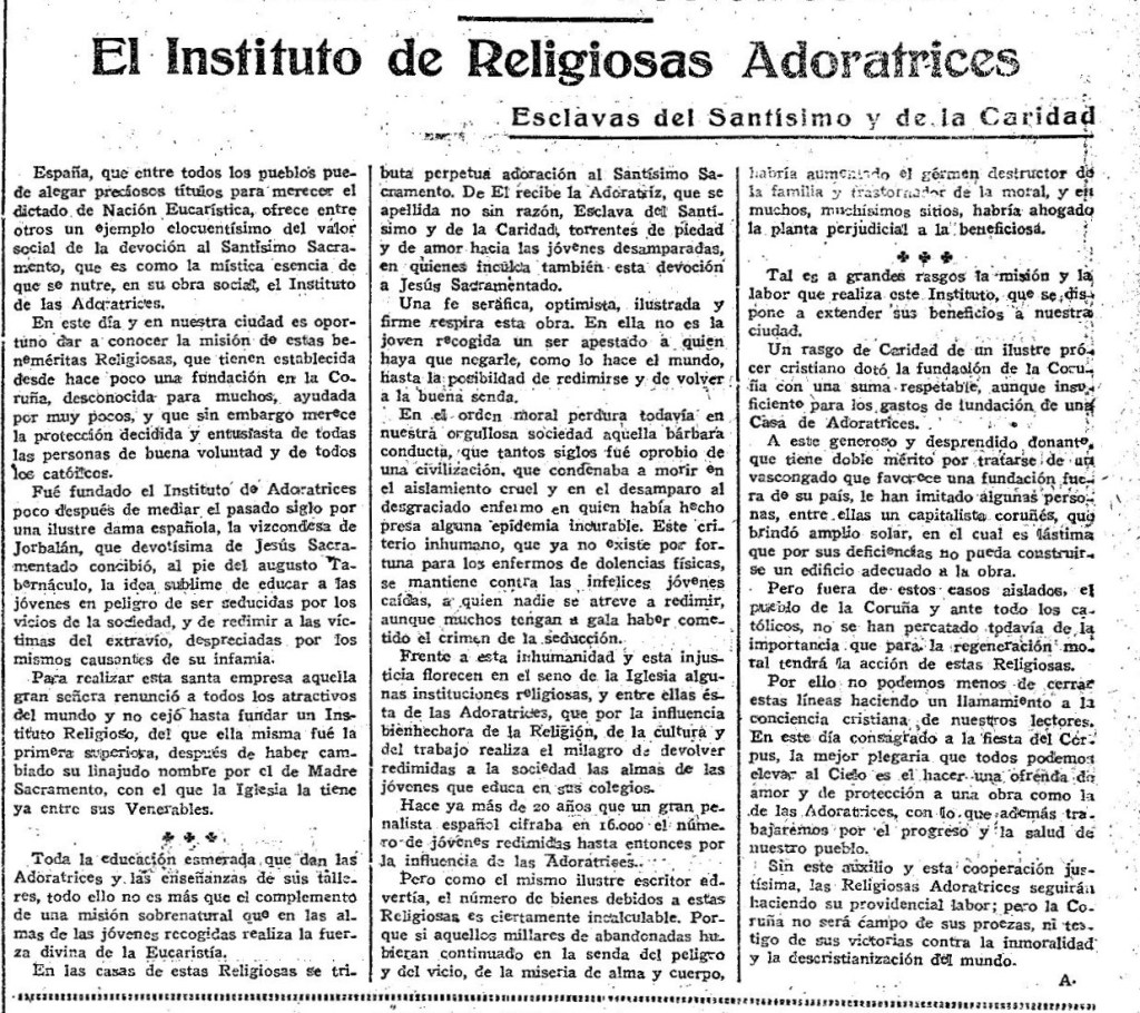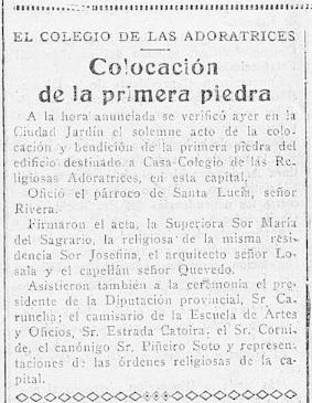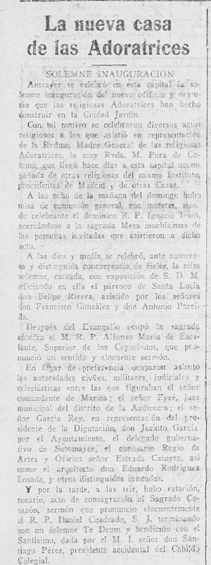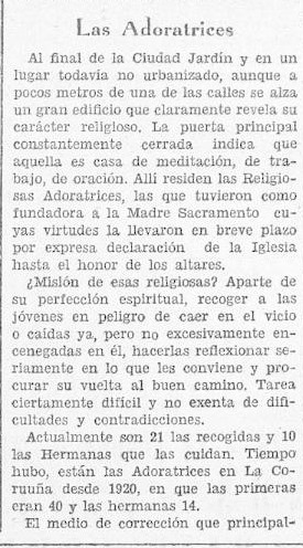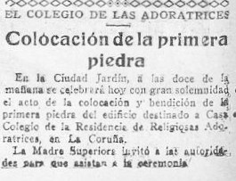 Era o Colexio e Residencia de relixiosas Adoratrices no cruce da rúa de Gregorio Hernández coa rúa de Gil Vicente, fonte á Cidade Xardín coruñesa.