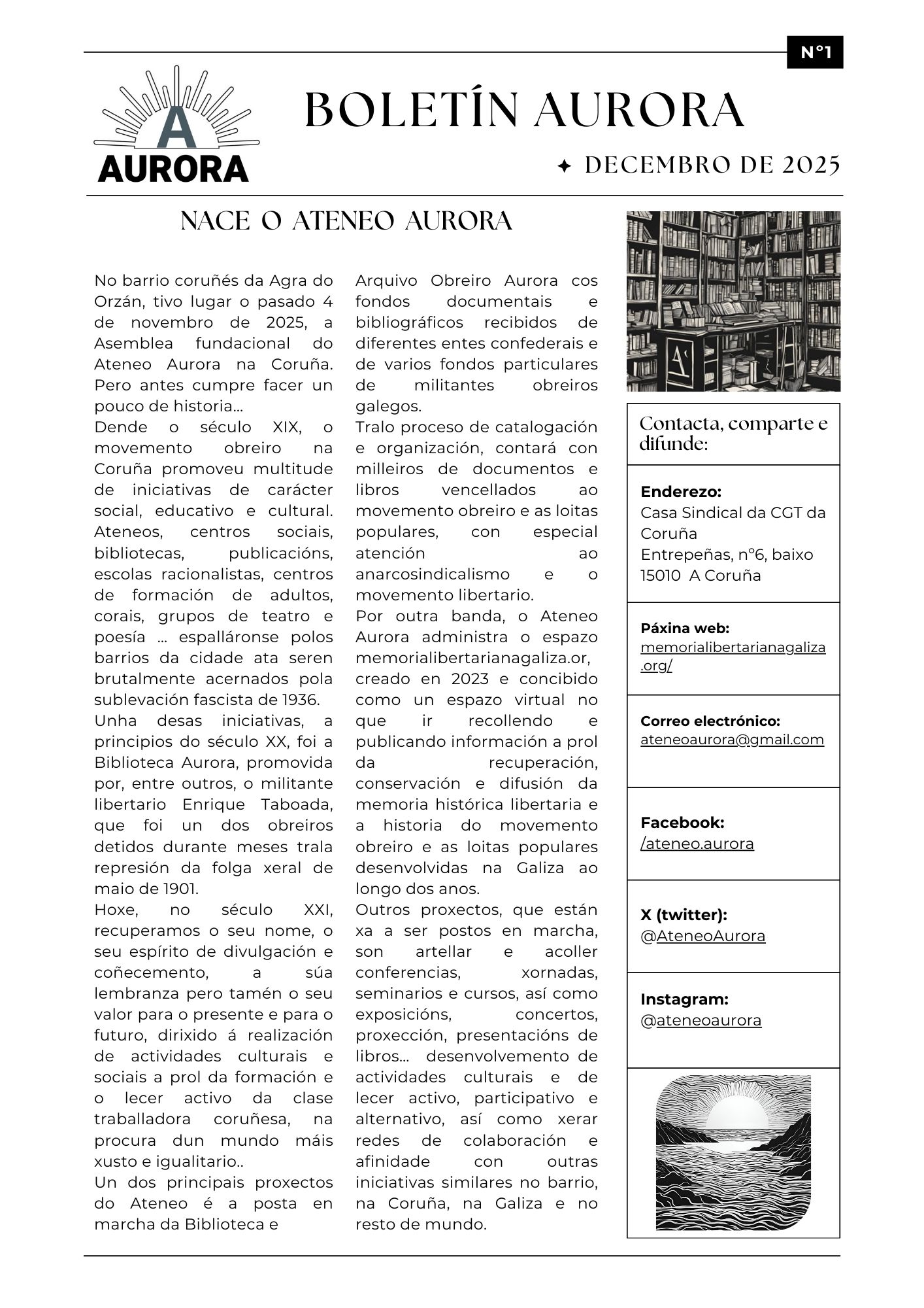 Boletín do Ateneo Aurora dos meses de novembro e decembro de 2025