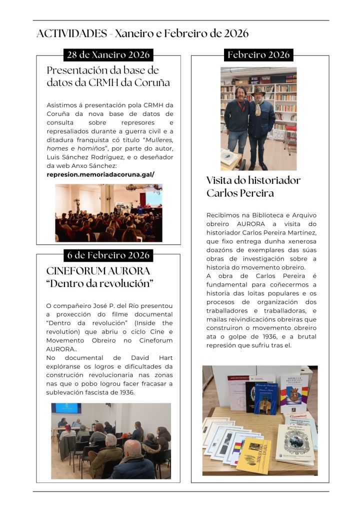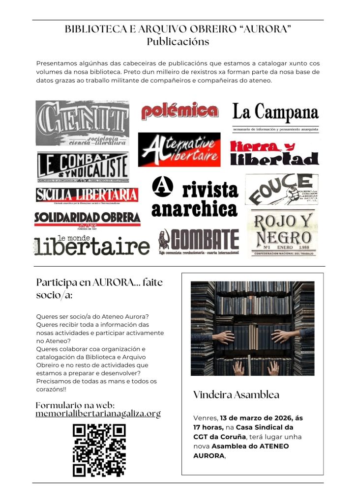 Un espazo para ir recollendo información para a recuperación, conservación e difusión da memoria libertaria e a historia do movemento obreiro na Galiza.