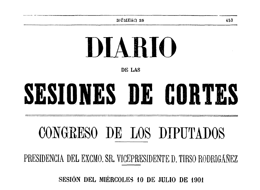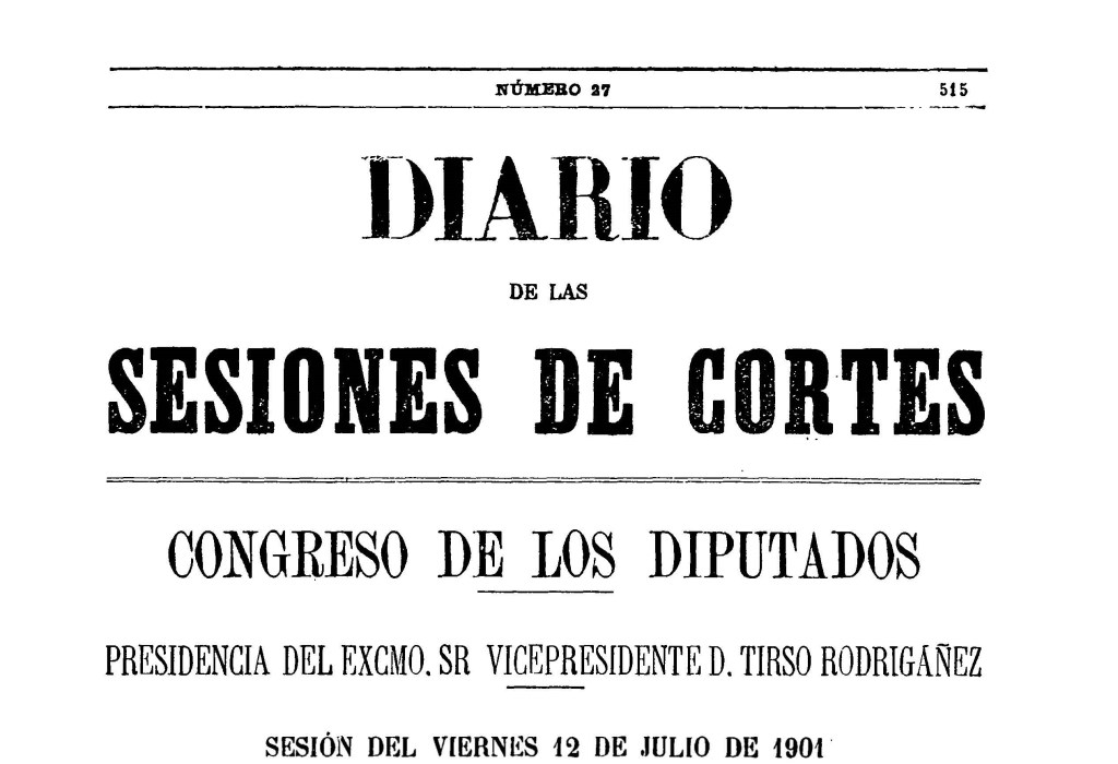 A Folga de 1901, no Diario de Sesións do Congreso dos Deputados